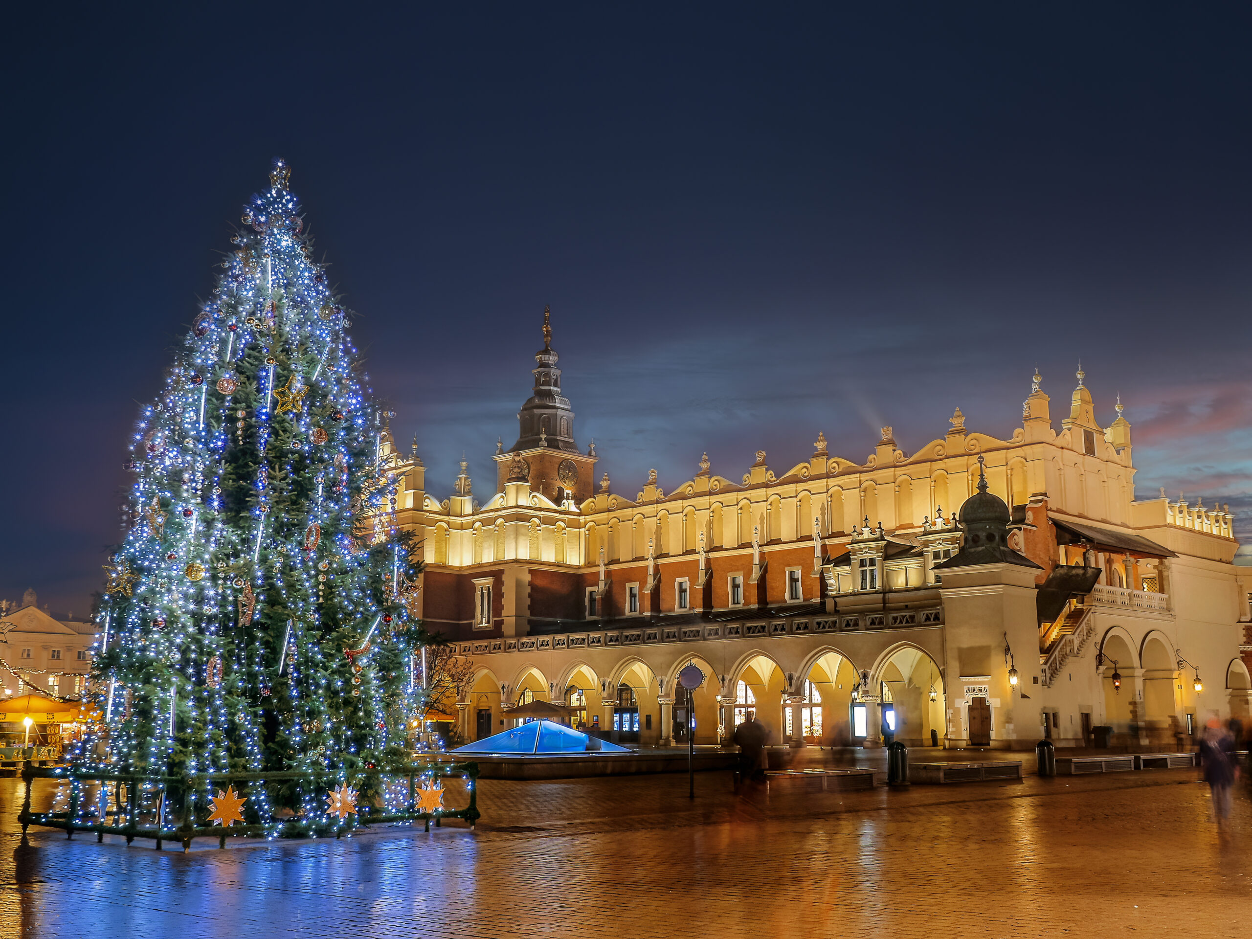 The heart of Kraków’s Christmas celebrations are in Rynek Główny, the largest medieval square in Europe, where a towering Christmas tree stands beside the historic Cloth Hall (Sukiennice). At the market stalls, you’ll find traditional Polish crafts as well as delicious seasonal treats like pierogi, oscypek (smoked cheese) and mulled wine (grzaniec galicyjski).