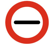 - Red and white triangular signs are warning signs alerting for possible dangers like sharp bends, pedestrian crossings or slippery surfaces.